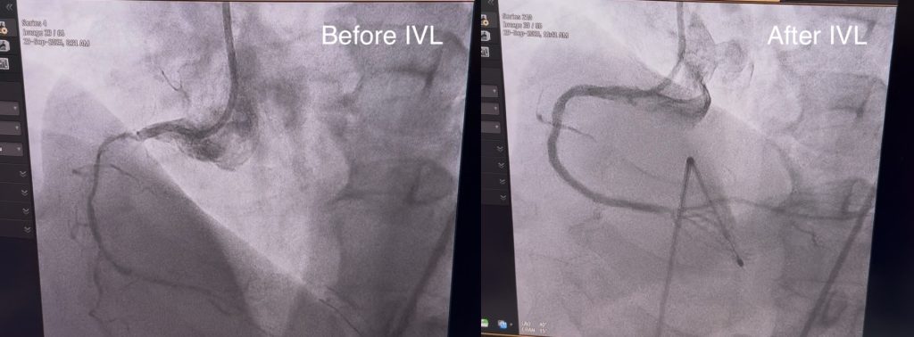 This case demonstrates the effectiveness of IVL in treating heavily calcified coronary lesions.